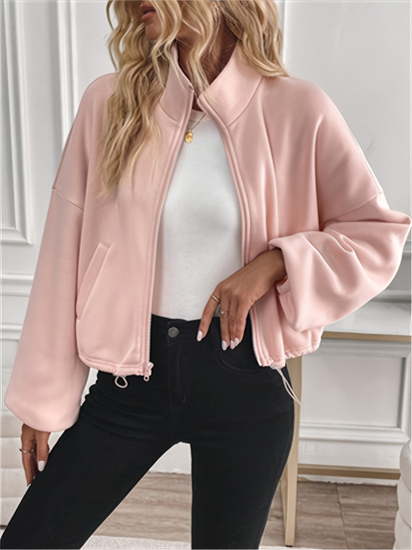 Women'S Casual Jacket with Long Sleeves, Featuring a Zipper And Drawstring, Stylish Attire for The Fall And Winter Seasons